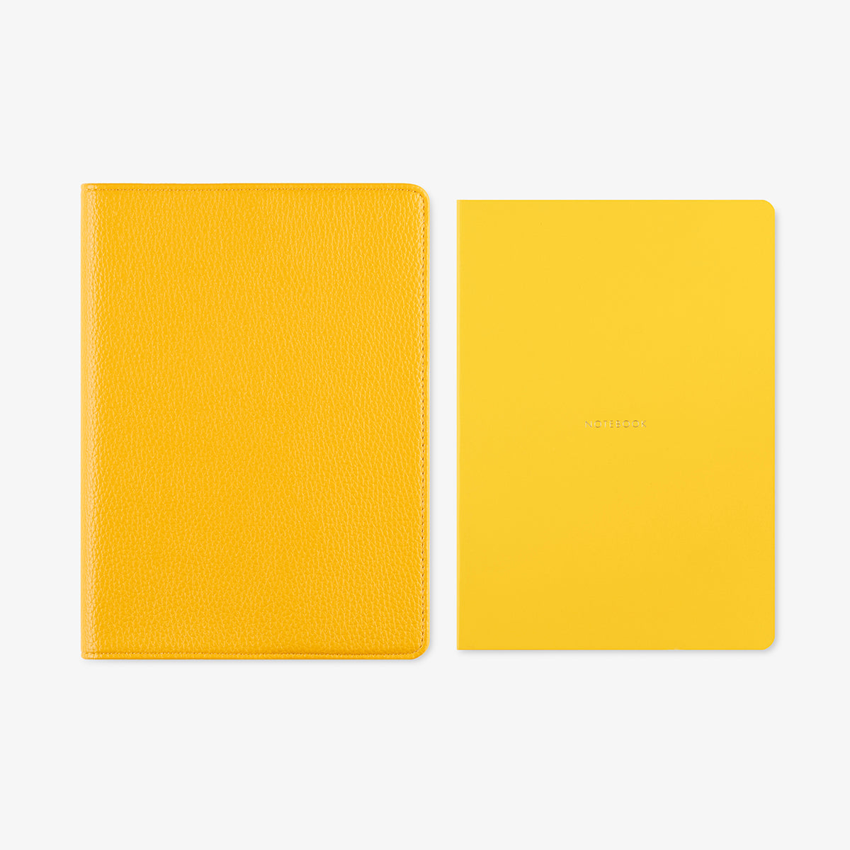 Set of Leather cover A5 + A5 paper notebooks with color on the side of the paper, plain