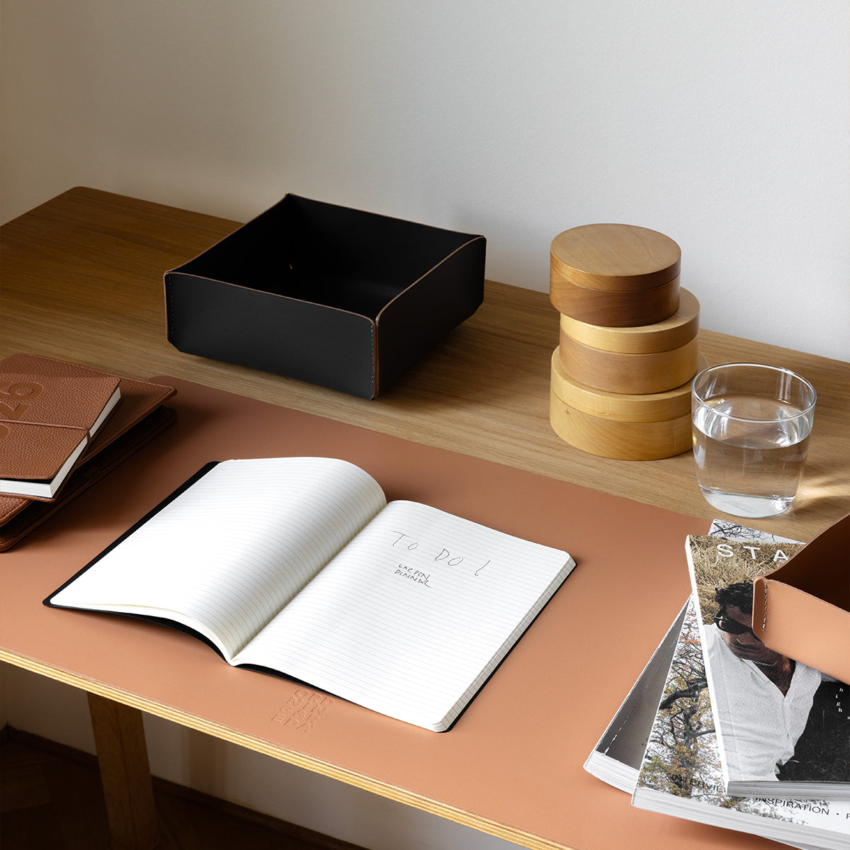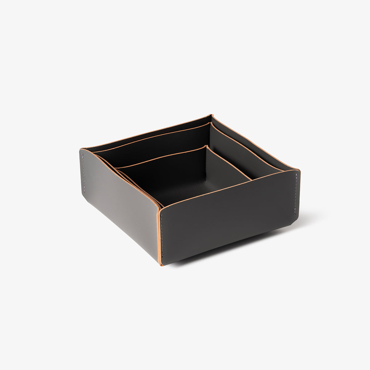 Set of 3 square basket, handmade with 100%% recycled leather. 15,1 x 15,1 x 6,5 cm